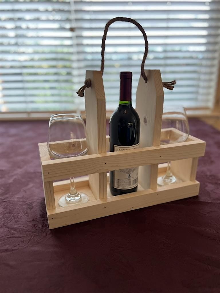 Come join us on February 7, 2026 at 10:00 AM for a fun woodworking event in our woodshop at Chimera Arts & Maker Space. You'll use basic woodworking skills to build a functional wine caddy that will be the perfect way to transport your wine bottle and glasses to an event or use it at home.
