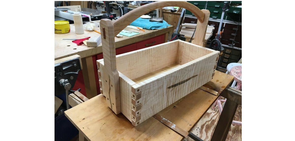 Join us for an all day class where you make a wooden tote out of hardwood. This versatile tote can be used to hold tools or other household items. The tote box is approximately 10" x 20" and 5" high. You will learn valuable woodworking skills including pattern routing techniques and how to make a mortise and tenon joint for the handle. Class size is limited to 4.