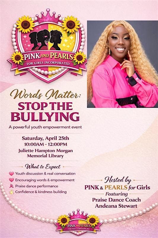 Let’s work together to build stronger, kinder communities for our children. This event is hosted by Pink and Pearls for Girls Incorporated . We are proud to announce our PP4G Praise Dance Coach, Andeana Stewart , will the presenter. Saturday, April 25th from 10a.m. to 12noon at the Juliette Hampton Library 2nd Floor, 245 High Street. Free Event. RSVP on eventbrite.com.