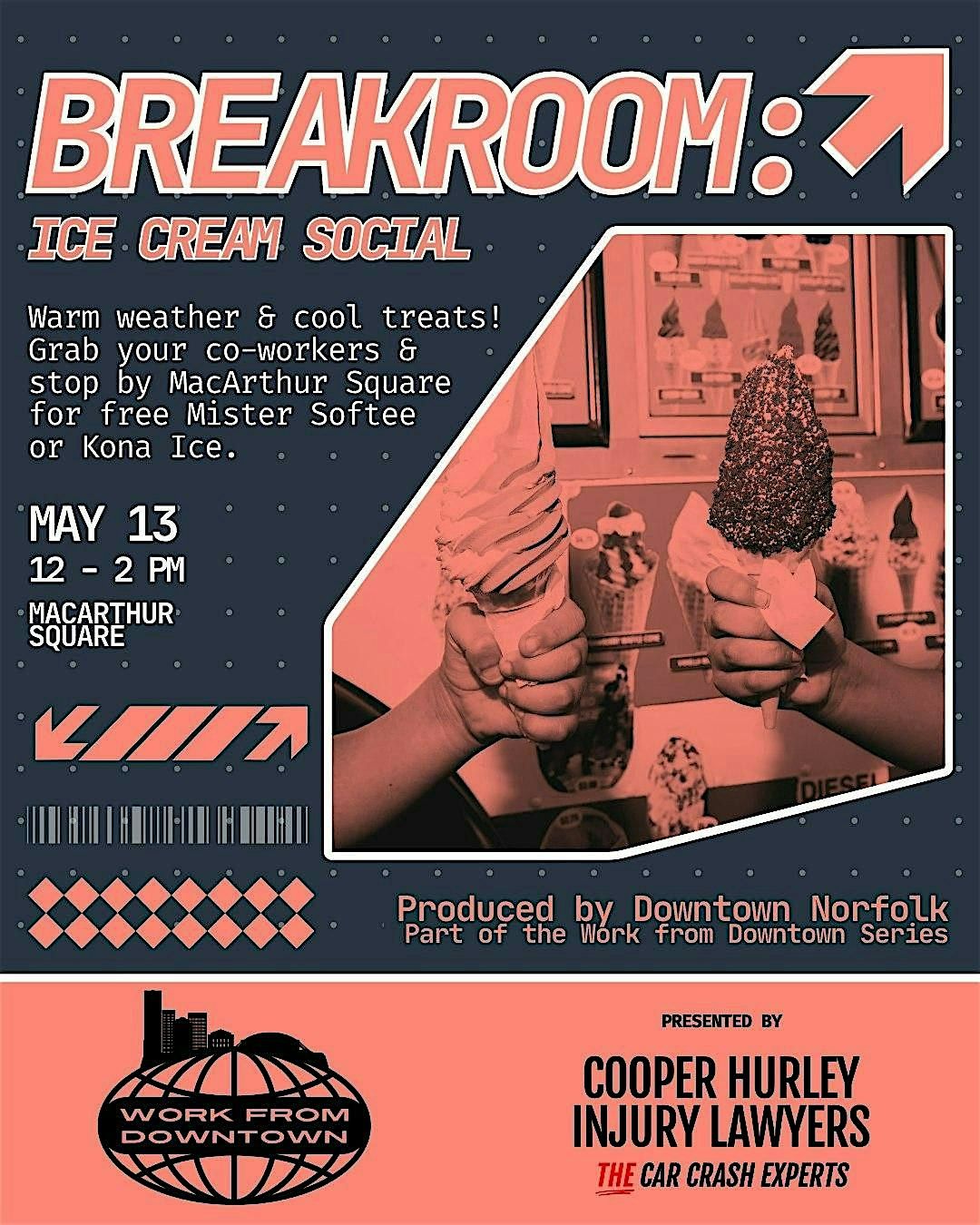 It's the perfect way to treat yourself on your lunch break! The first 250 guests will get free dessert from Mister Softee or Kona Ice. Grab your co-workers and head on over to MacArthur Square!