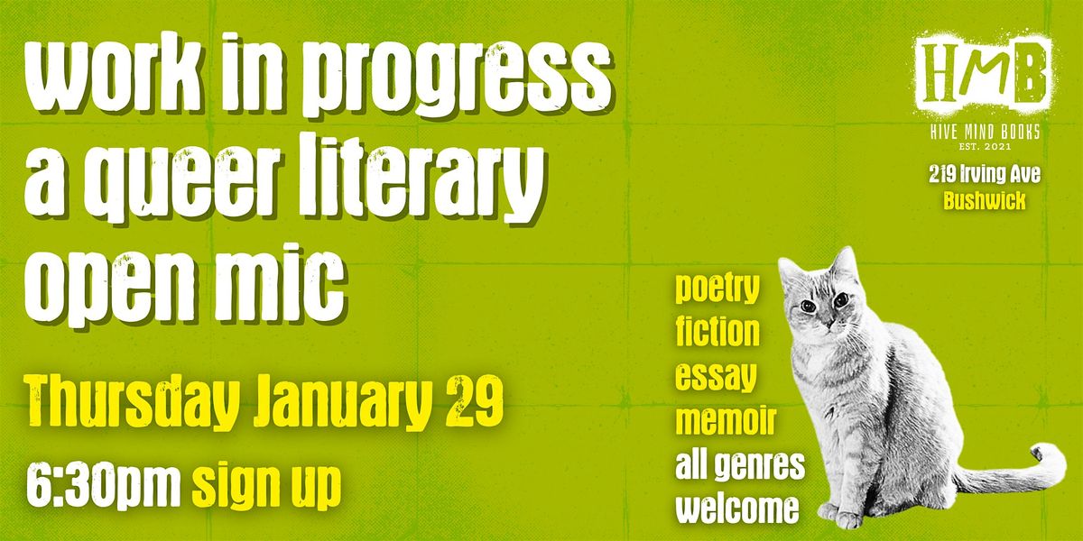 This mic is specifically for queer and trans writers. All genres are welcome. Poets, journalists, novelists, memoirists, whatever you write, you’re welcome at the mic. Give us your sci fi, your autofiction, your flash pieces sitting in a drawer, whatever you’ve got. There is no pressure to be perfect. Bring your work in progress or your polished piece, whatever you feel like reading, and share your work in a supportive environment. Writers of all levels are welcome.