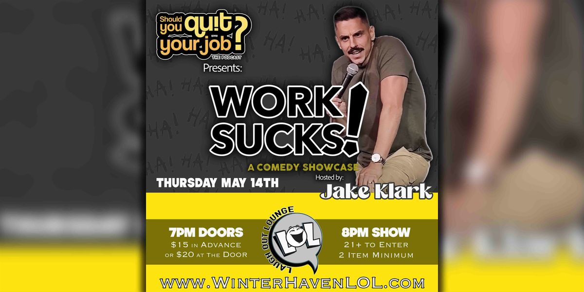 Come see the #1 rated "Work Sucks" comedy showcase where nationally touring comedians take the stage to vent on the daily struggles of the 9-to-5 grind. From bad bosses and underwhelming jobs to feeling underpaid and underappreciated, this show is all about finding humor in the mundane and often frustrating rat race! With relatable jokes and witty observations, the comedians will have you laughing about the absurdities of modern work culture, from pointless meetings to endless bureaucracy. It's a night to let go of your workday blues and enjoy some well-deserved laughter. This will be the only “Work” meeting you’ve ever enjoyed! 😀