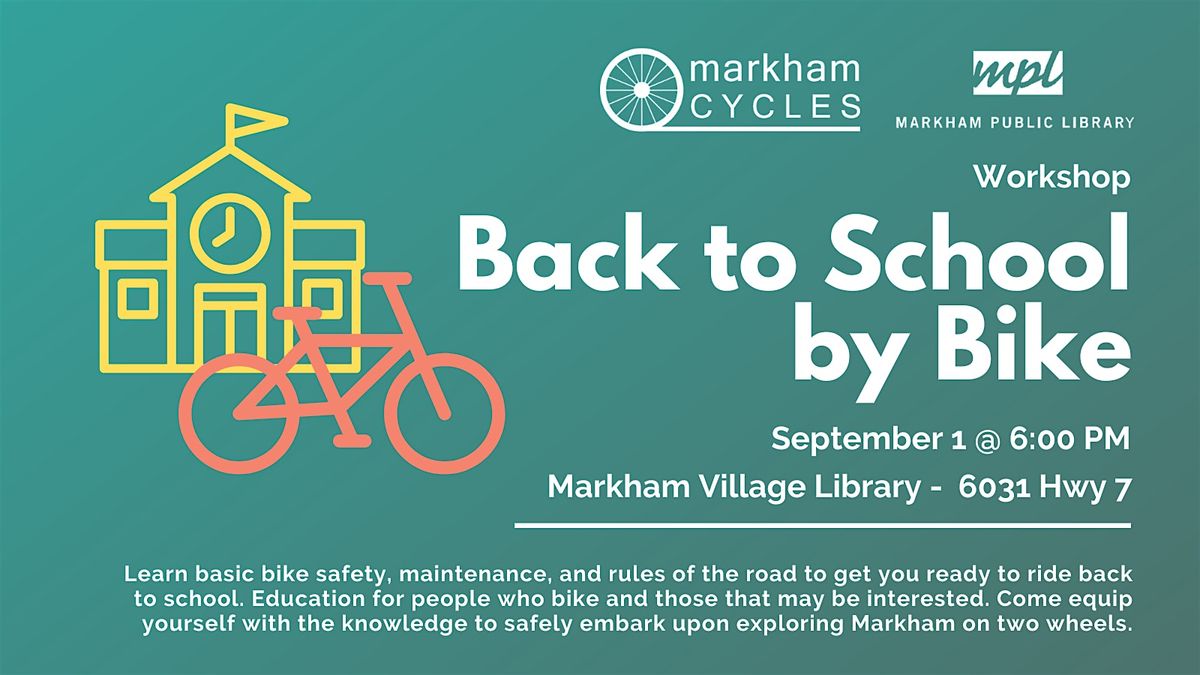 Learn basic bike safety, maintenance, and rules of the road to get you ready to ride back to school. Education for people who bike and those that may be interested. Come equip yourself with the knowledge to safely embark upon exploring Markham on two wheels.
