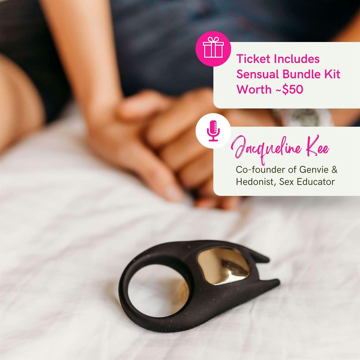Elevate your pleasure game from good to great with our Co-Founder and Sex Educator Jacqueline Kee. This session is perfect for couples ready to reignite connection. Explore sensory-based techniques, mindful intimacy, and communication tools that deepen pleasure and playfulness.