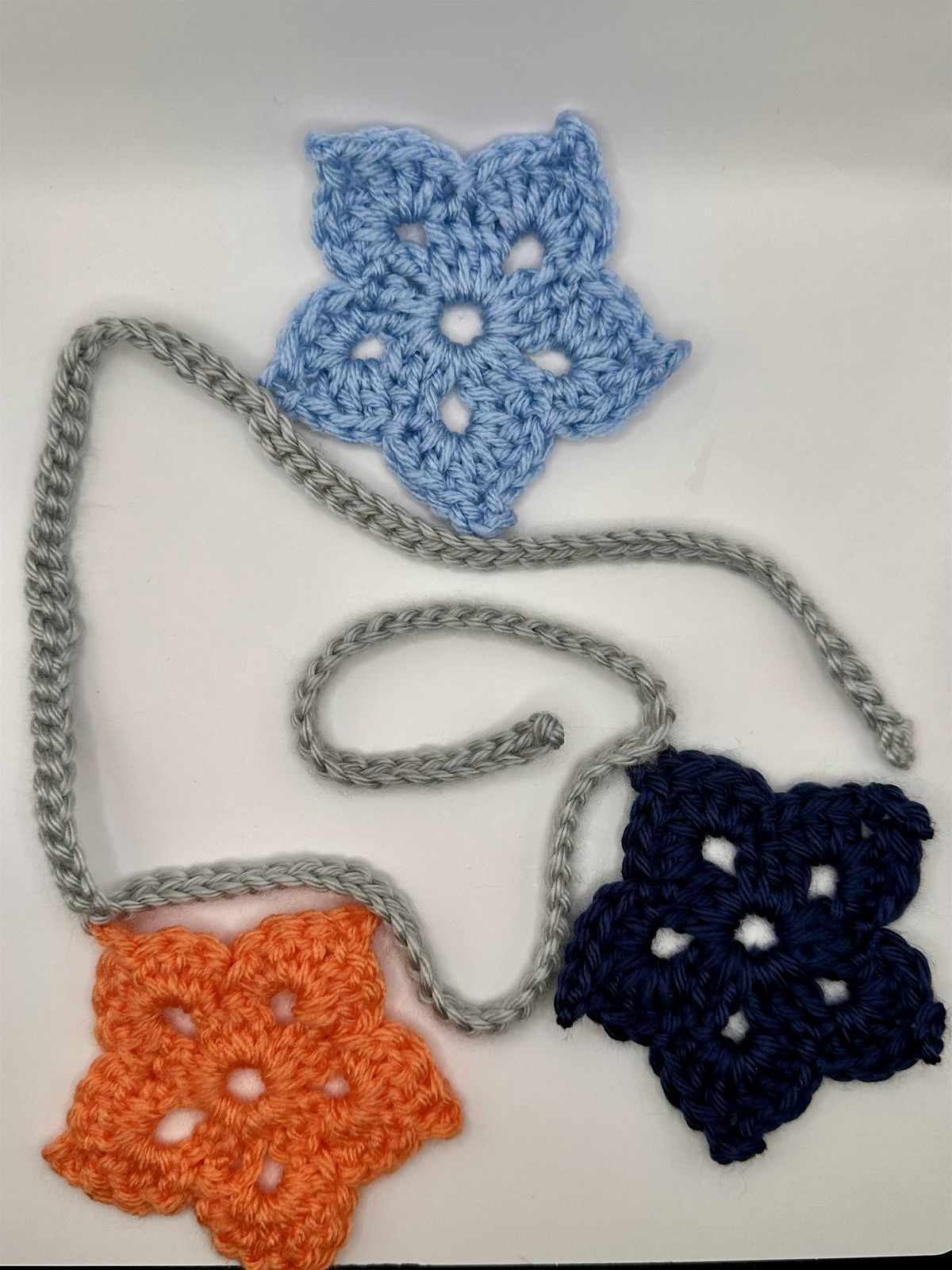 In this workshop, you’ll learn how to crochet small star motifs and join them together to create a charming garland. Along the way, you’ll practice working in the round, shaping techniques, and simple joining methods to bring your project together beautifully.