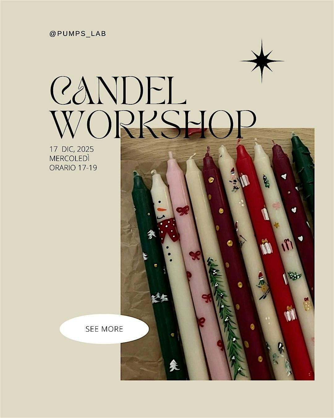 Decora con noi la tua candela nataliazia da usare come centrotavola o come decorazione d'arredamento. Nel biglietto sarà incluso tutto il materiale che troverete a disposizione sul luogo e un welcome coffee con delizie natalizie. Tutte le informazioni dettagliate verranno inviate via email