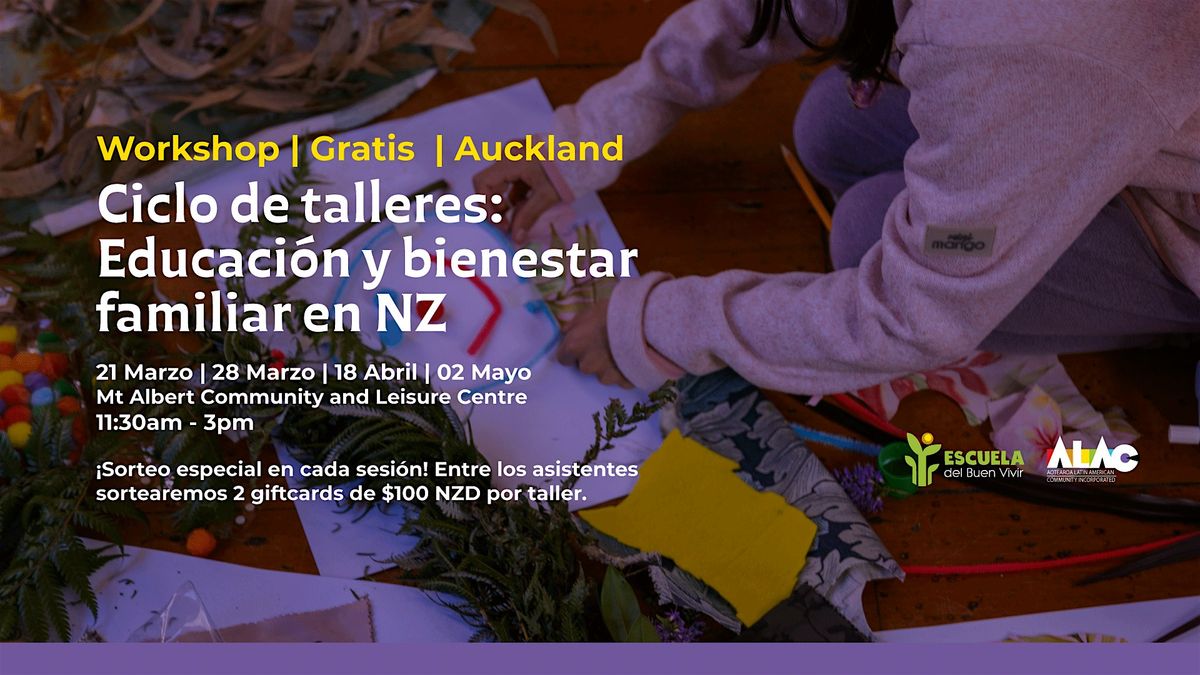 Taller gratuito para familias latinas sobre bienestar escolar. Actividades de arte para niños, comida y sorteos de $100 NZD? ¡Te esperamos!