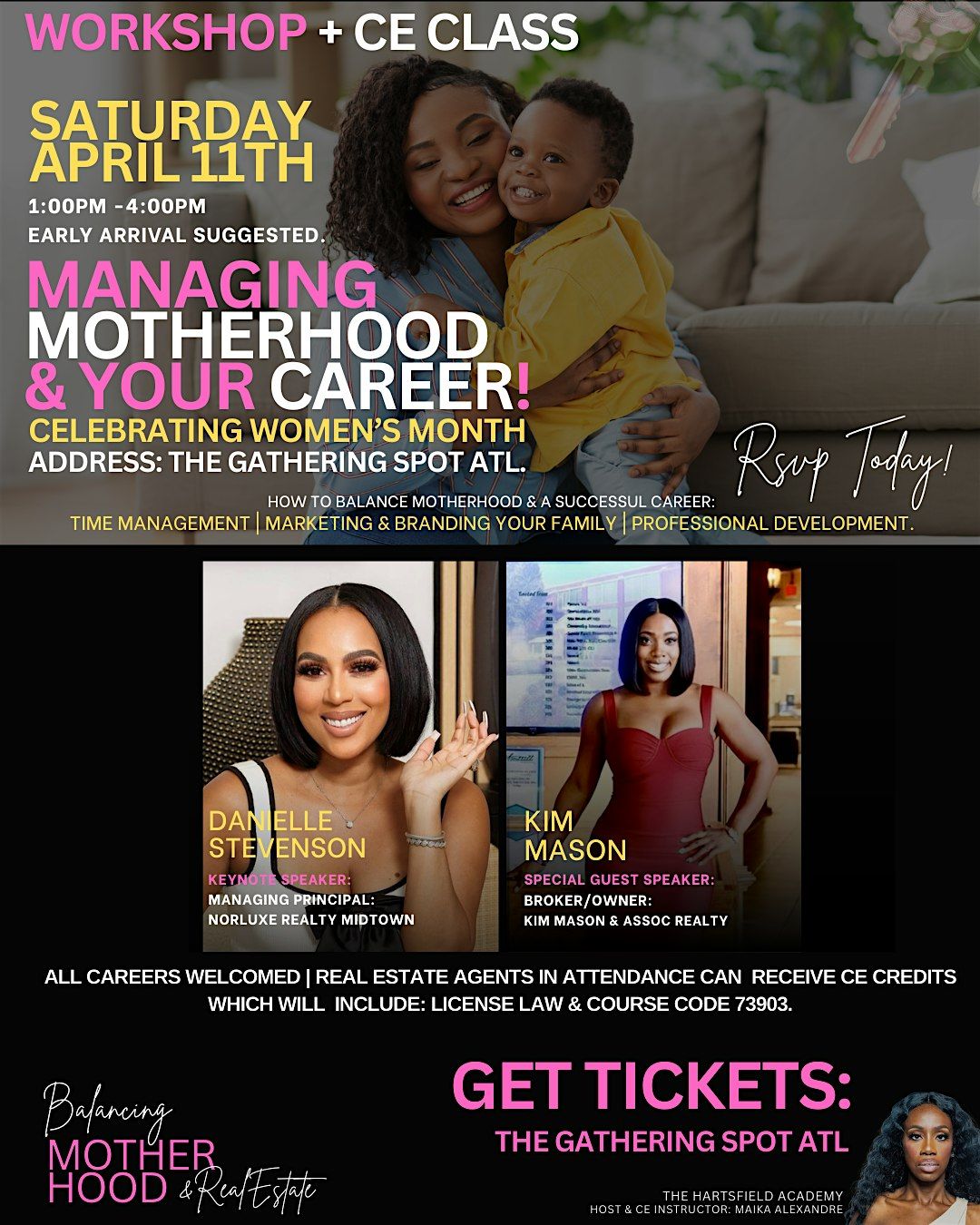 You are invited to join us for our unique event: "Managing Motherhood & Careers" as part of our "Balancing Motherhood & Real Estate - panlist & curated event. Non-Real Estate careers invited & all careers are welcomed.