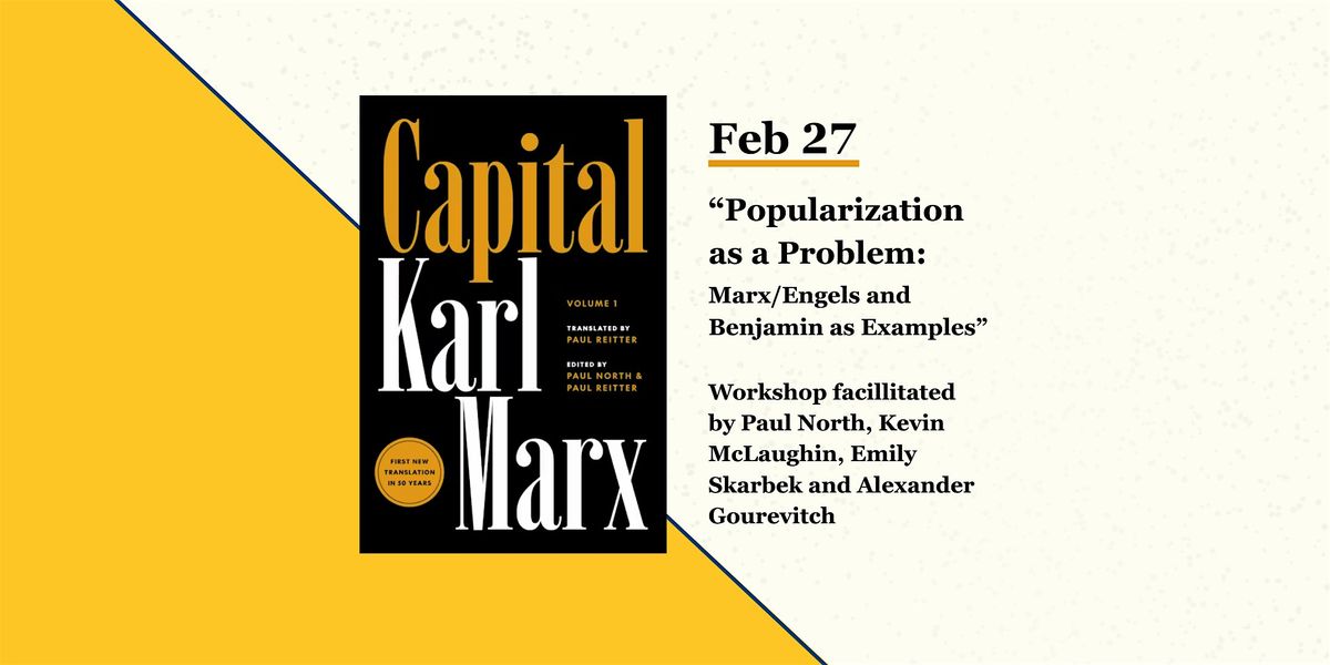 Workshop: "Popularization as a Problem: Marx/Engels and Benjamin as Examples", facilitated by Paul North, Kevin McLaughlin, Emily Skarbek, and Alexander Gourevitch.