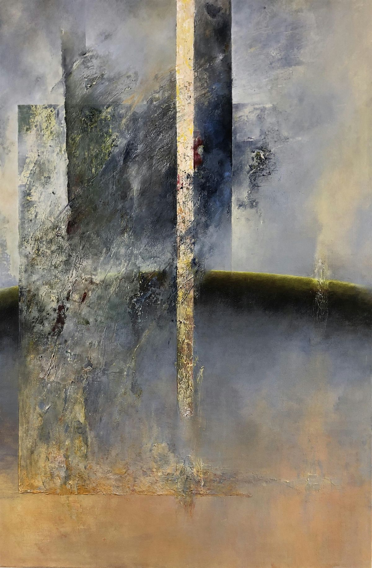 In 1990 the company moved to the States and settled in Detroit. On tour breaks Elizabeth set up her easel to paint. Her work was fueled by summer tornados on lake Michigan, castles in Eastern Europe, race riots in Los Angeles…a rapidly expanding collection of life impressions. Primarily self-taught, Elizabeth schooled herself in oils before a reluctant introduction to acrylics changed her course, and she never looked back. Her works have evolved from impressionistic to abstract, while maintaining a theatrical dynamic that is suggestive of narrative. Elizabeth’s fascination with sacred geometry and collective consciousness continues to inspire her work.
