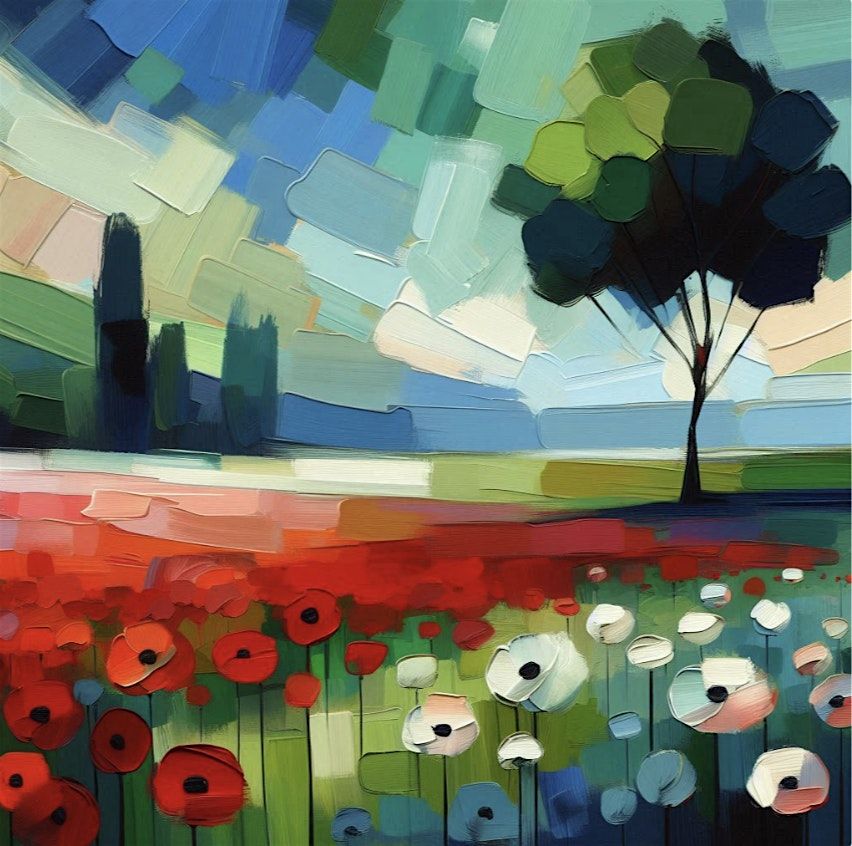 Calling all painters, dabblers, and creative rebels—let’s push boundaries and break some rules! In this art class, you’ll create a bold, abstract expression with palette knife and brush. We’ll explore how to distill shape, light, and energy into powerful marks on the canvas.
