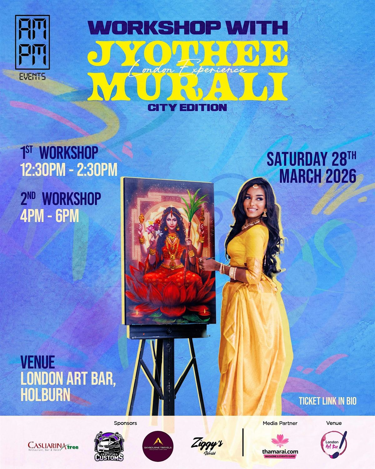 Join us for a vibrant painting workshop with Jyothee Murali on Saturday 28th March 2025 at London Art Bar, Holborn.