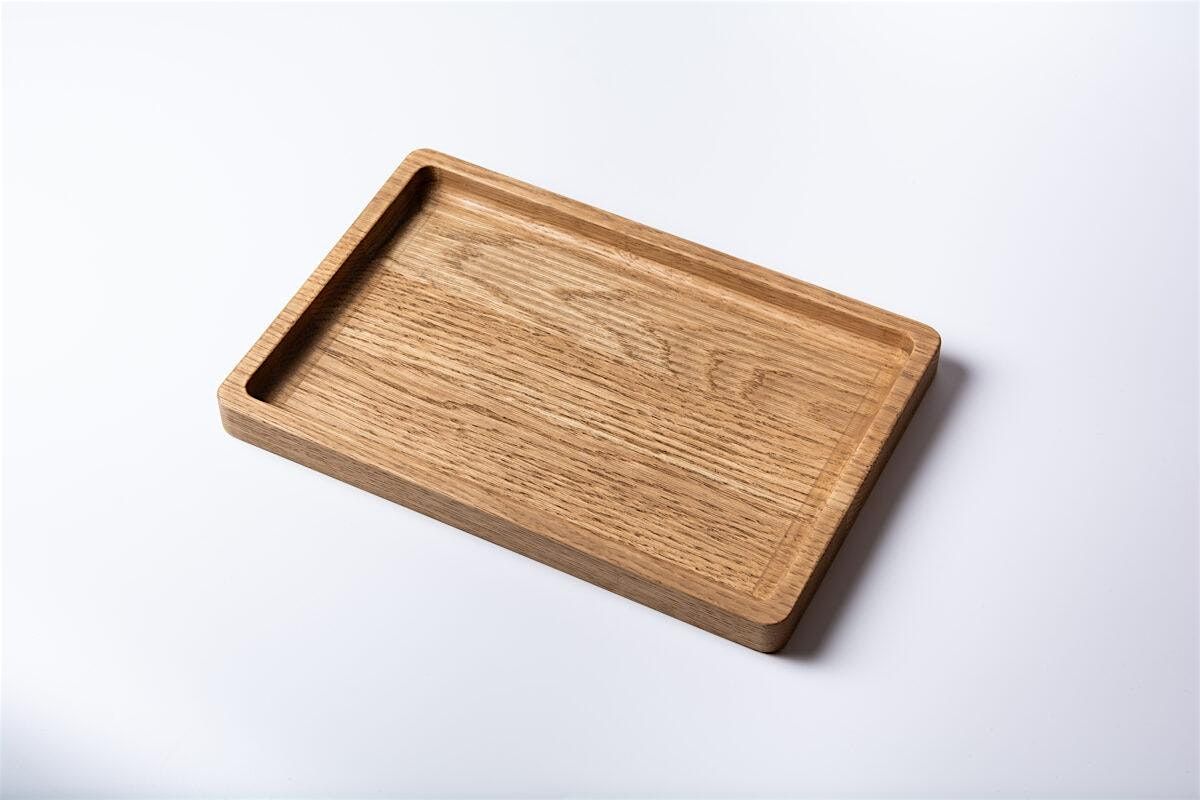 Each participant receives a pre-cut hardwood blank (cherry, walnut, or maple) and a routing template to guide the process. By the end of the session, students leave with a completed valet tray that measures 8" long x 4-5/8" wide, as well as a solid understanding of the router’s versatility for shaping and detail work.