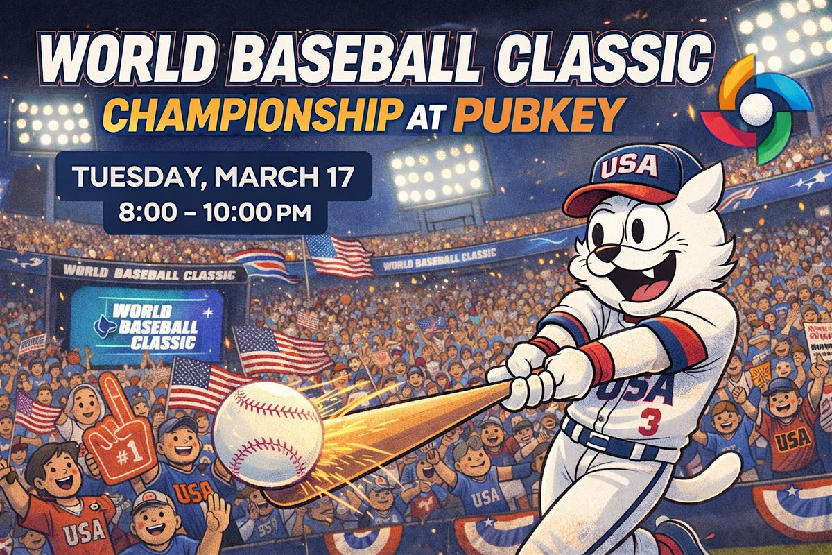 Get ready for an epic showdown at the World Baseball Classic Championship happening live at Pubkey! Catch all the thrilling in-person action, cheer for your favorite teams, and soak up the electrifying atmosphere. Whether you're a hardcore fan or just love the game, this event is where you want to be. Don't miss out on the fun and excitement – join us at Pubkey for a baseball experience like no other!