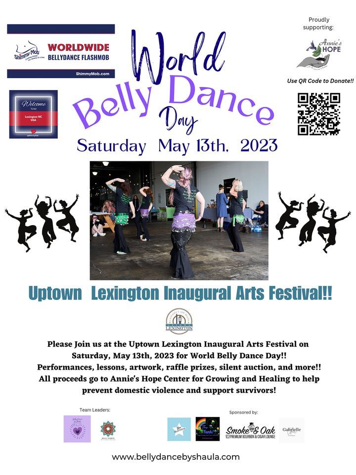 As Team Leader of Team Lexington for the second year in a row, I am extremely excited to announce that we will be performing at the Inaugural Uptown Lexington Art Fest!! There will be multiple a Belly Dance by Shaula booth featuring our local sponsors and supporters, multiple Shimmy Mob performances, and a full costumed performance featuring belly dancers from across the Piedmont Triad!!