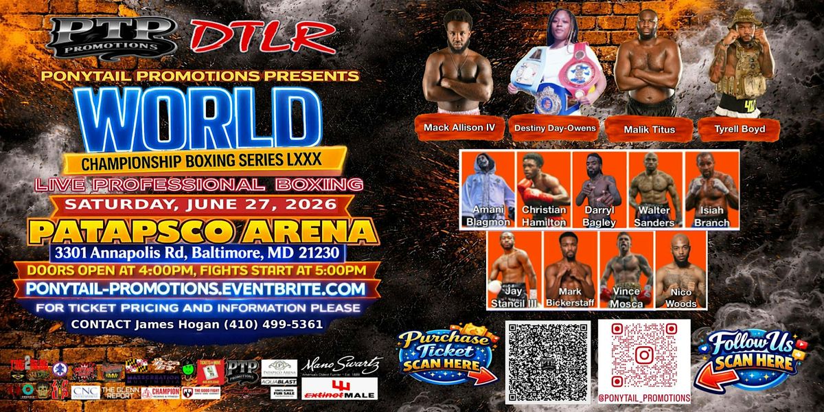 Join us for an exciting night of live professional boxing at it's best. Ponytail Promotions presents World Championship Boxing, Baltimore MDAbout this Event
