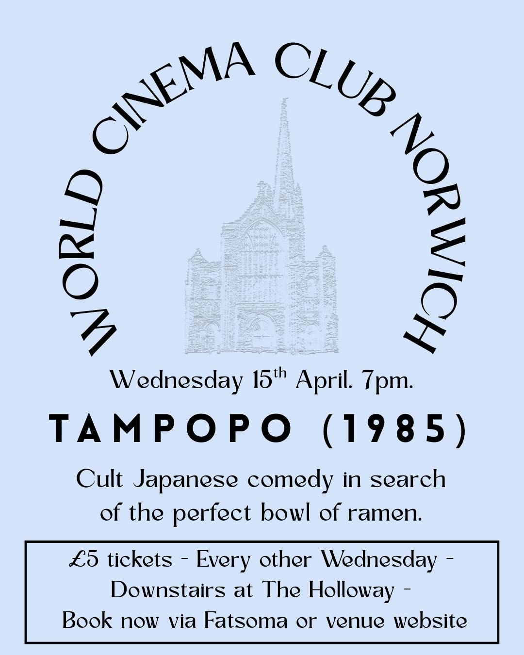 World Cinema Club Norwich Presents Tampopo - A cult Japanese comedy in search of the perfect bowl of ramen. 'Juzo Itami's "ramen western" has always stayed in my mind. It was the first film I'd ever seen that seemed to want to do something more than stick to one linear story, that played with the language of film as it tried to do it all: to be a comedy and a drama, to show death, sex and food all together – sometimes in the same scene.' - The Guardian