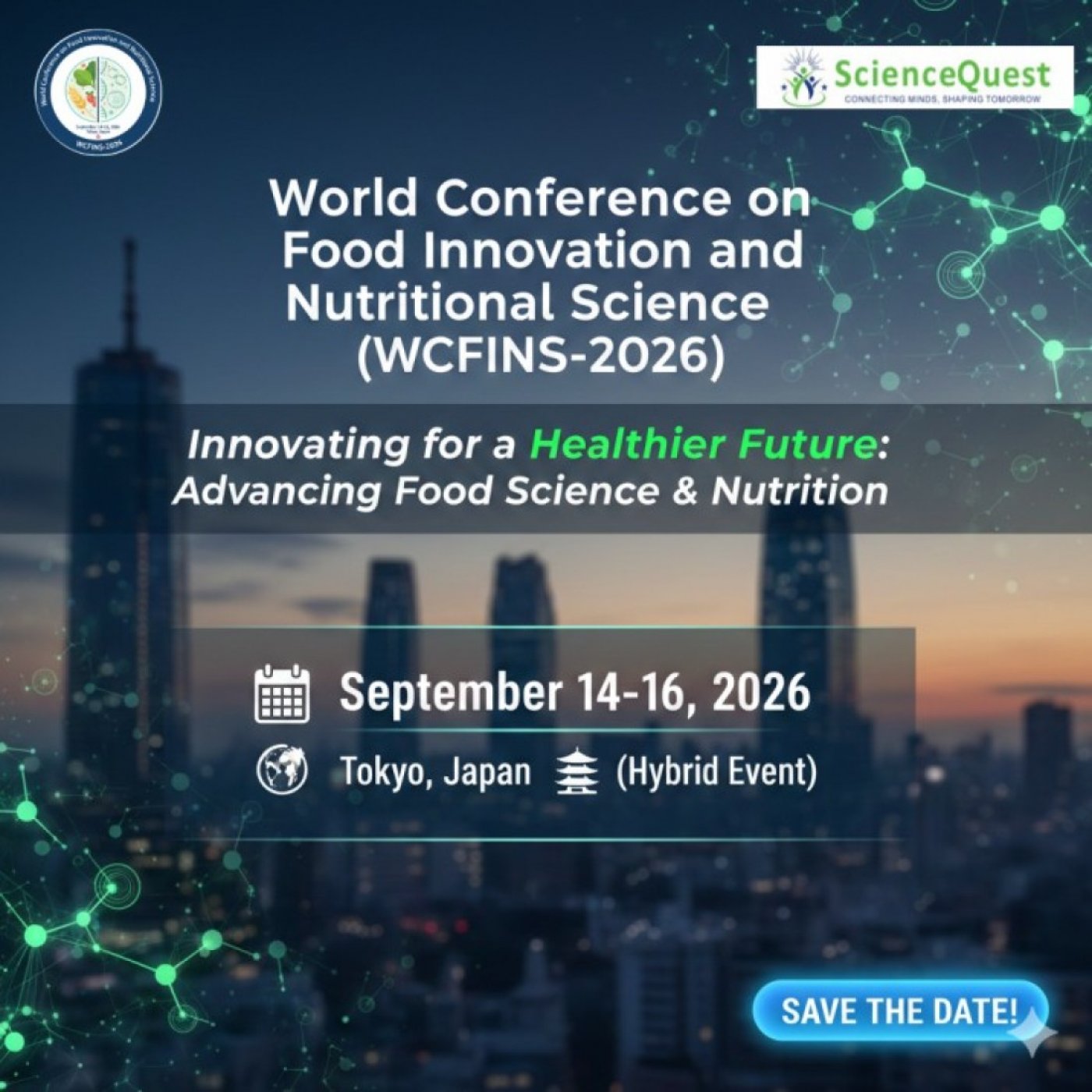 It is with great pleasure that we welcome you to the World Conference on Food Innovation and Nutritional Science (WCFINS 2026), taking place from September 14-16, 2026, in Tokyo, Japan. As the world continues to evolve, so do the challenges and opportunities in food science and nutrition. This summit serves as a premier platform for researchers, industry leaders, policymakers, and innovators to come together, share groundbreaking discoveries, and explore sustainable solutions that will shape the future of food and health.Over the next three days, you will have the opportunity to engage in insightful discussions, network with global experts, and discover the latest advancements in food innovation, technology, and nutritional science. Whether through keynote sessions, panel discussions, or interactive workshops, we encourage you to collaborate, exchange ideas, and contribute to shaping a healthier and more sustainable world.