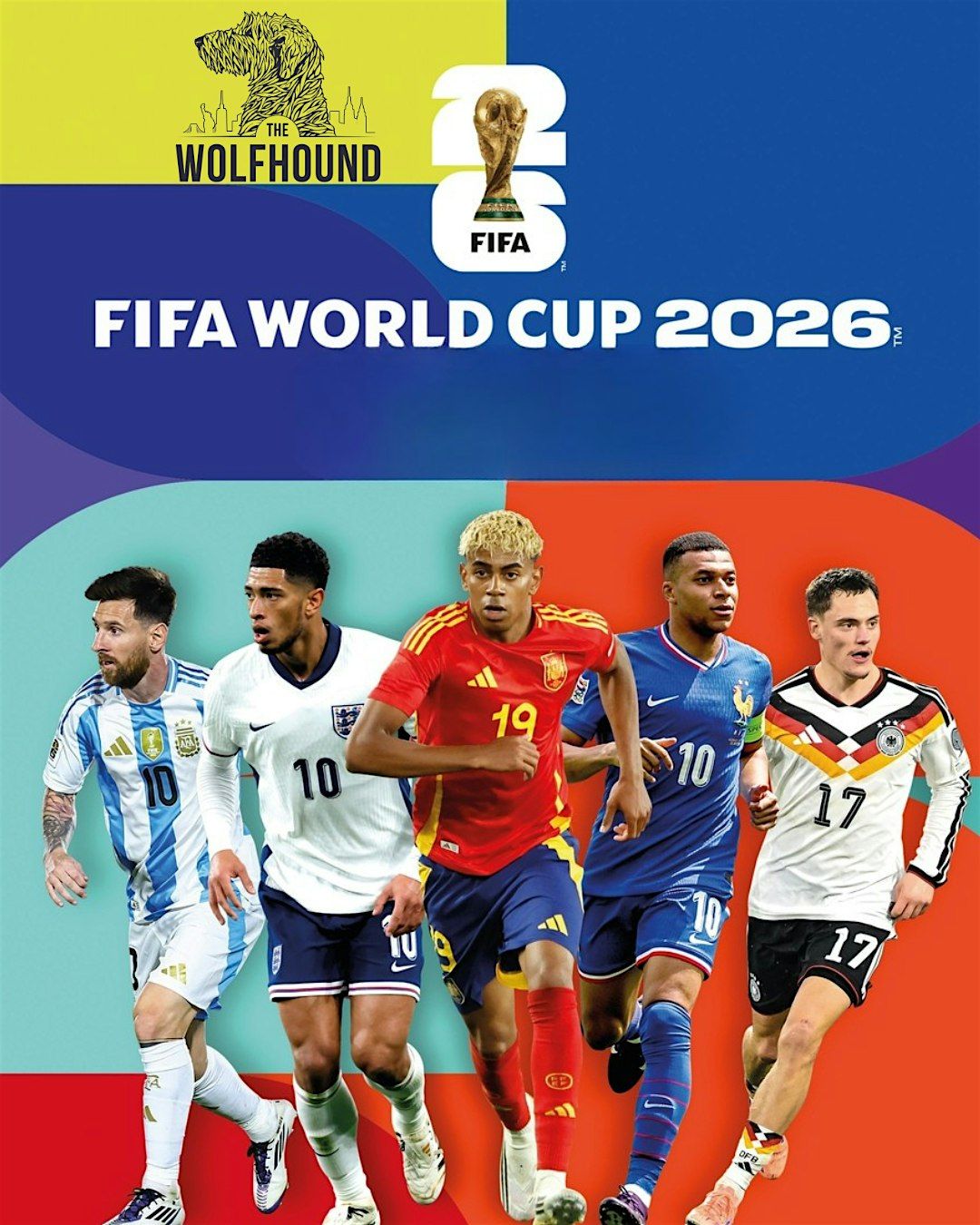 Get ready for an epic start to the World Cup! Join us in person at the Wolfhound for a night full of fun, friends, and football fever. Don't miss out on the best vibes and great company as we kick off the tournament together. Bring your passion and let's make this party unforgettable!