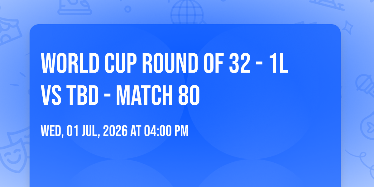 📍 Location: 33.7553, -84.4006🌟 Step into a world of wonder at World Cup Round of 32 - 1L vs TBD - Match 80, where extraordinary moments await! 🏛️ Located at Mercedes-Benz Stadium in dynamic Atlanta, GA, this event will become the talk of the town. 📅 Join us on July 1st, 2026 at 04:00 PM for a celebration that defies the ordinary. ✨ This curated experience brings together the best of entertainment, culture, and community spirit. Every detail has been thoughtfully planned to ensure an unforgettable experience for all our guests. 🎯 Take advantage of this opportunity to be part of something special. 🎊 Early registration is recommended as space is limited!