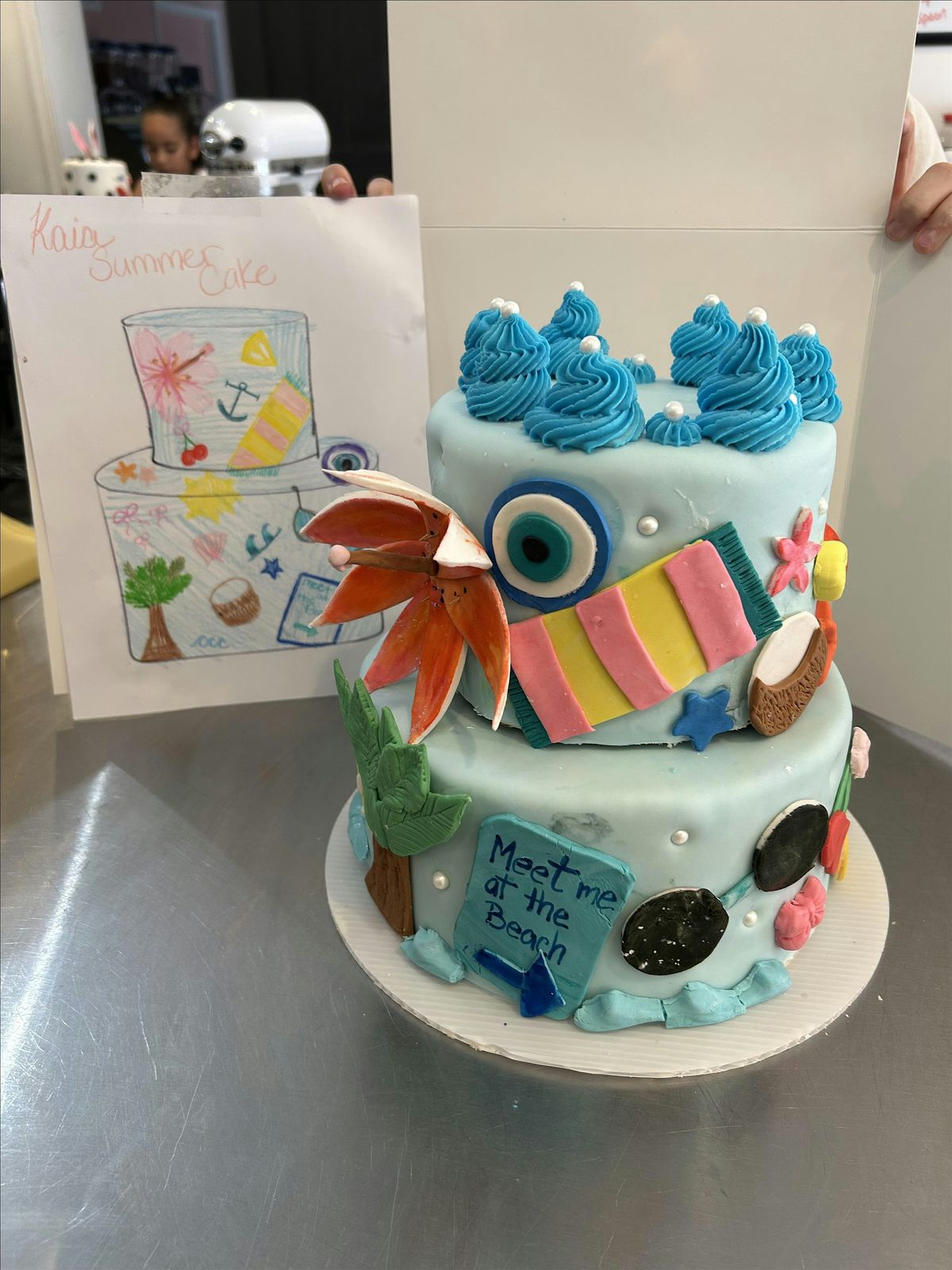 From start to finish our bakers will create a two tier cake of their dreams. We will begin the week with sketching their cakes to go on our inspiration board then our bakers will learn how to bake the perfect cake and lastly we will spend the remainder of the week learning butter cream and fondant skills culminating at the end of camp with their unique cake creations. It's totally tiered!