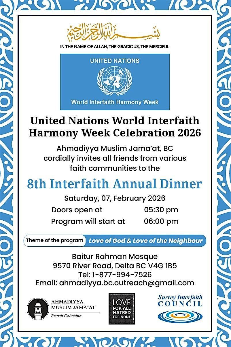 Come together in person to celebrate unity and friendship at the World Interfaith Harmony Week Dinner. This is a chance to meet people from all walks of faith, share great food, and enjoy meaningful conversations. Let’s build bridges and strengthen bonds in a warm, welcoming atmosphere. Don’t miss out on this special evening of connection and harmony!