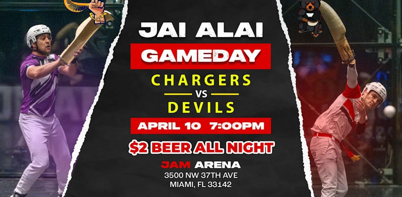 Experience the fast-paced thrill of professinal jai alai as the Charger Jai Alai Team take on the Devils Jai Alai Team at JAM arena. Known for its lighting-speed gameplay and high-energy atmosphere, this matchup promises an exciting night of competition, precision, and edge of your seat action. Perfect for both longtime fans and newcomers, it's a dynamic sporting experience unlike any other.