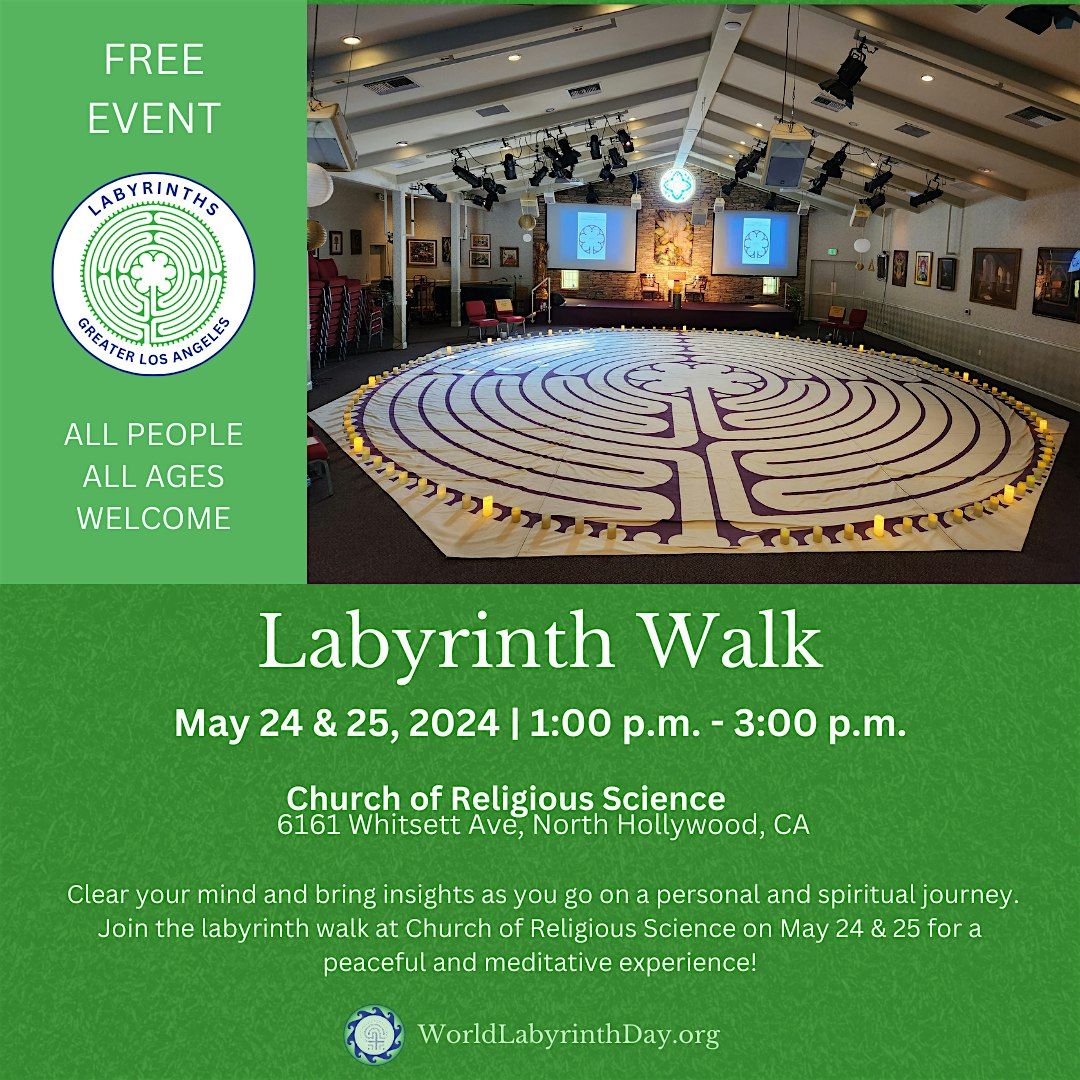 Join us at the Church of Religious Science on May 24th and 25th from 1pm to 3pm for World Labyrinth Day Celebrations 2024! Come together with labyrinth enthusiasts from around the world to celebrate the beauty and significance of these ancient paths. Whether you're a seasoned labyrinth walker or a curious beginner, this event is for you. Immerse yourself in the peaceful energy of the labyrinth as we mark this special event with walks, meditations, and community connections. Don't miss out on this unique opportunity to be part of a global celebration of unity and mindfulness. See you there!