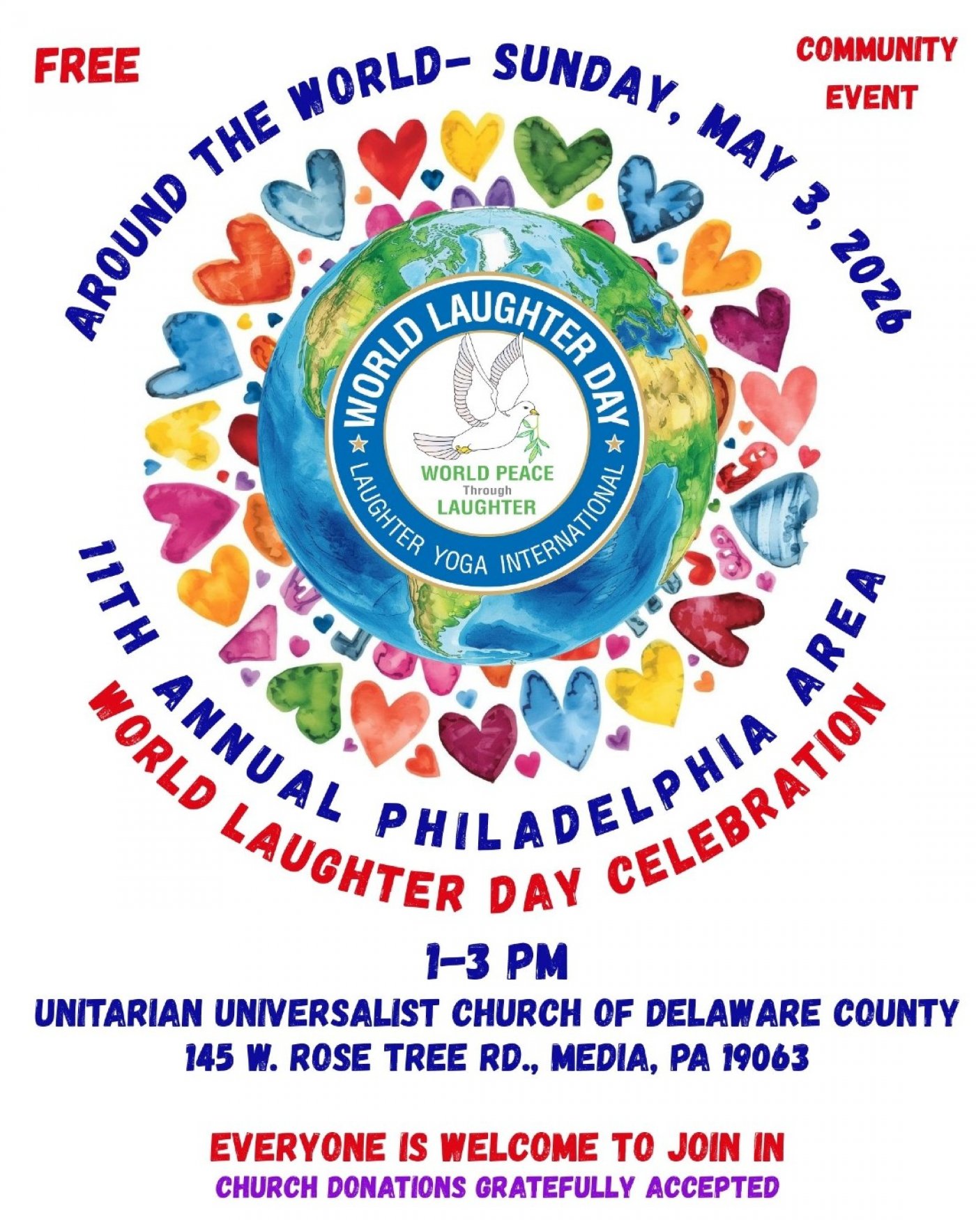 MEDIA, PA — January 30, 2026 — It’s official! Sunday, May 3rd, 2026, marks the 11th Annual Philadelphia Area World Laughter Day Celebration, hosted in Media, Pennsylvania — the heart of Delaware County.