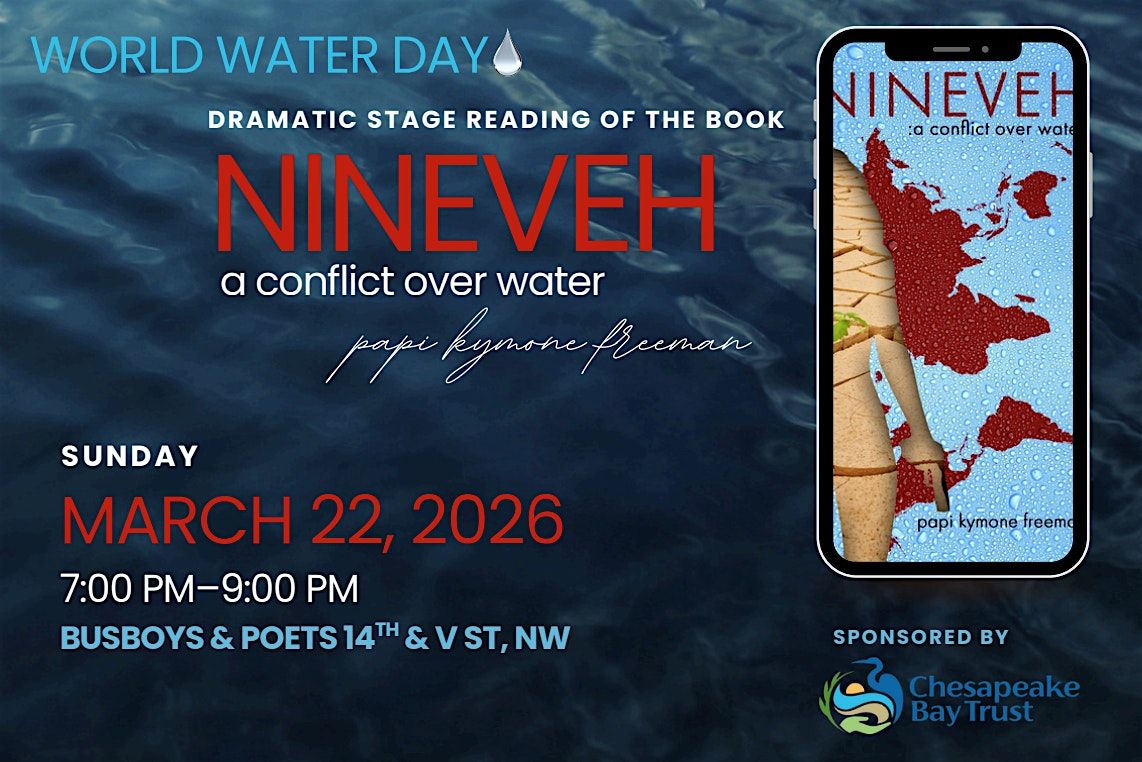 Join the dramatic afrofuturism stage reading of the book NINEVEH: A Conflict Over Water by papi kymone freeman