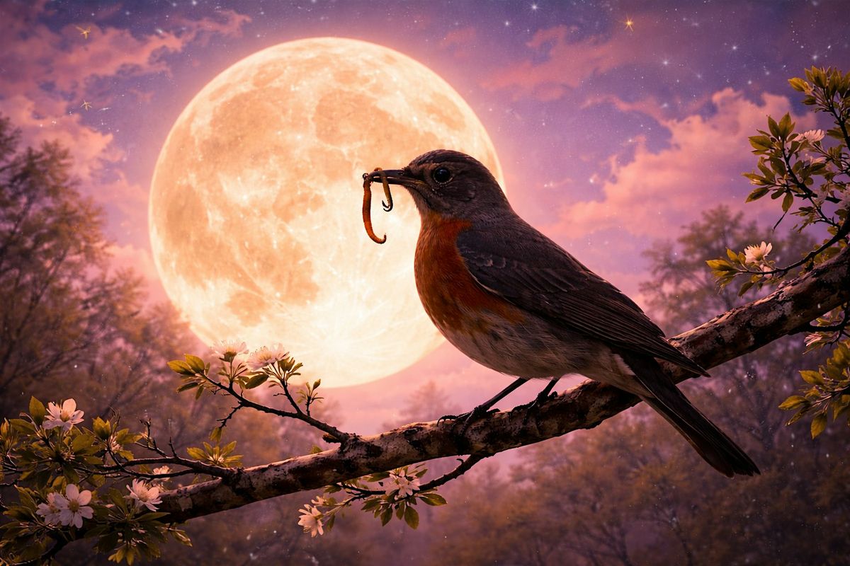 The Worm Full Moon gets its name from the earthworms that come out when the soil warms up. It happens around the changing of the seasons, from winter to spring. The worms provide nourishment for birds and other animals coming out of hibernation in the Northern Hemisphere.