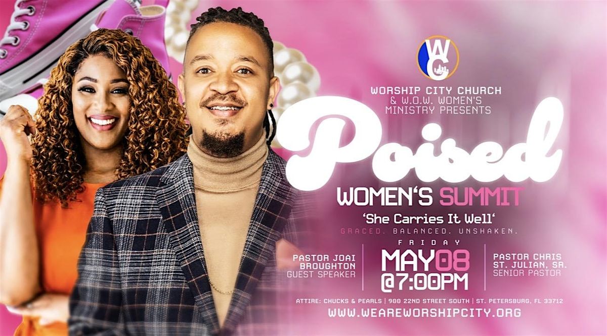 Poised Women’s Summit: She Carries It Well. Experience powerful worship, empowerment & sisterhood on Friday, May 8th at 7:00PM.
