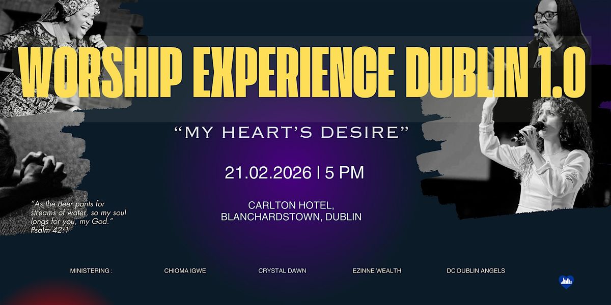 DC Dublin Worship Experience – My Heart Desire – is a powerful gathering of worship, praise, and spiritual renewal, featuring anointed ministers from Ireland and across the world. This vibrant evening invites every attendee to encounter God in a fresh and personal way through uplifting music, heartfelt ministry, and an atmosphere charged with faith. Come expecting inspiration, connection, and a deep stirring of your heart’s desire as we worship together in unity and joy.