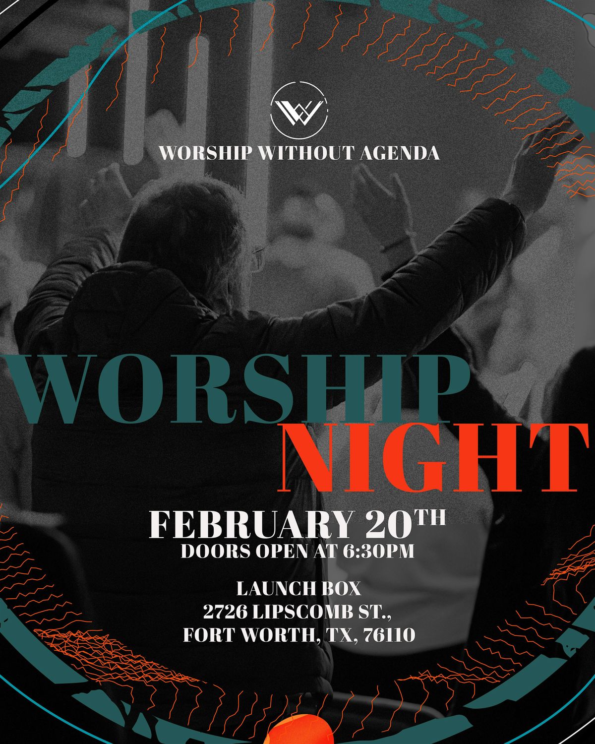 Worship Without Agenda is an intentional gathering where we slow down, set aside performance, and come together to worship God with sincere hearts free from expectation, pressure, or pre-set agendas. This night is all about genuine connection with Jesus through heartfelt worship, prayer, and presence.