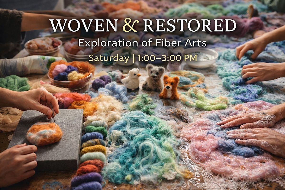 A 2-hour fiber arts experience with felting, texture, and hands-on exploration. Slow down, create, and reconnect—no experience needed.