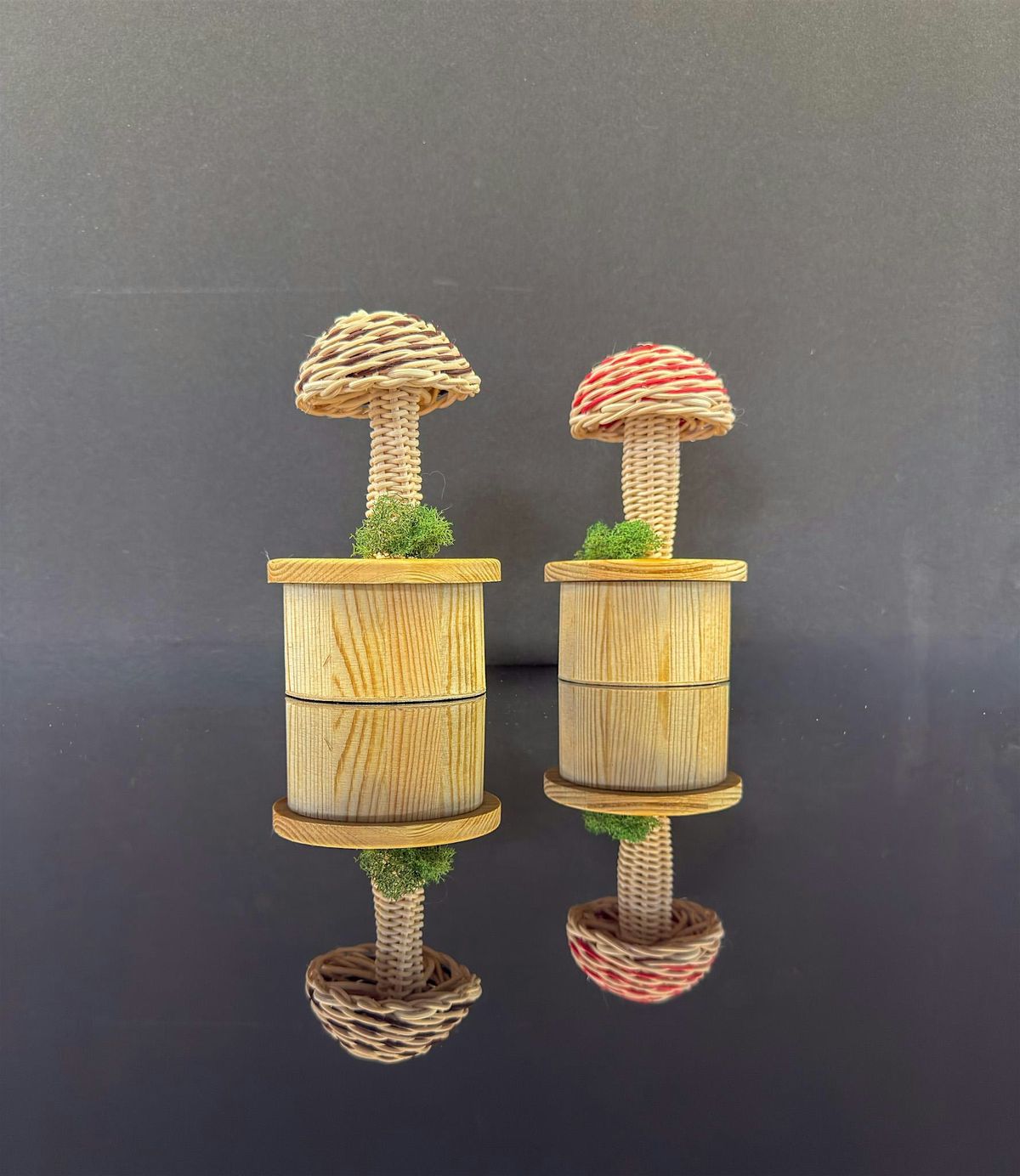 We all need a little whimsy in our lives right now, and the Mini Mushrooms are my most whimsical design so far! This little guy is appropriate for beginning and experienced weavers. Choose from red, natural or chocolate brown rattan reed. You can also choose to weave on a rustic wood base, or a 3" wood trinket box.