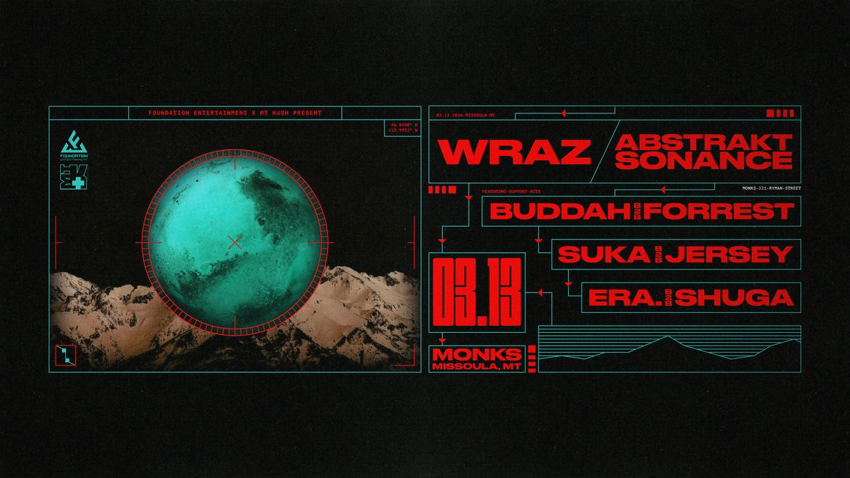 Prepare for a deep, dark, and heavyweight night of bass as Wraz and Abstrakt Sonance take over Monks Bar in Missoula on March 13.