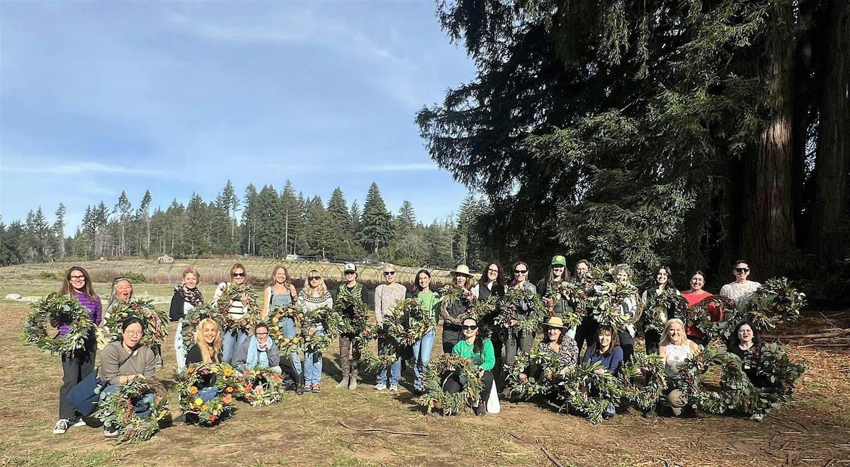 Locally foraged and found Wreath Making Workshop featuring California native plants, local greenery, and preserved flowers from Sea to Sky Farm. These gems help create a beautiful one of a kind work of art in the form of a fresh wreath. Come celebrate the seasonal festivities of gathering up, and creating beauty with us for our second annual Wreather Madness event. Brought to you by Chris and Tina!