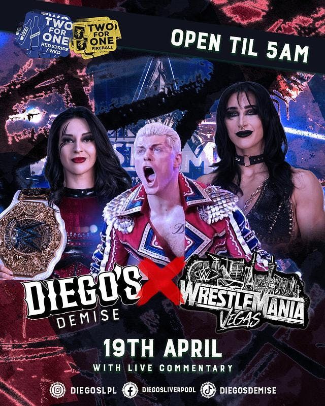 Come down for Night 2 of WrestleMania live through the night until 5AM, whether you’re catching a few matches or staying for the full card.Drink Specials: