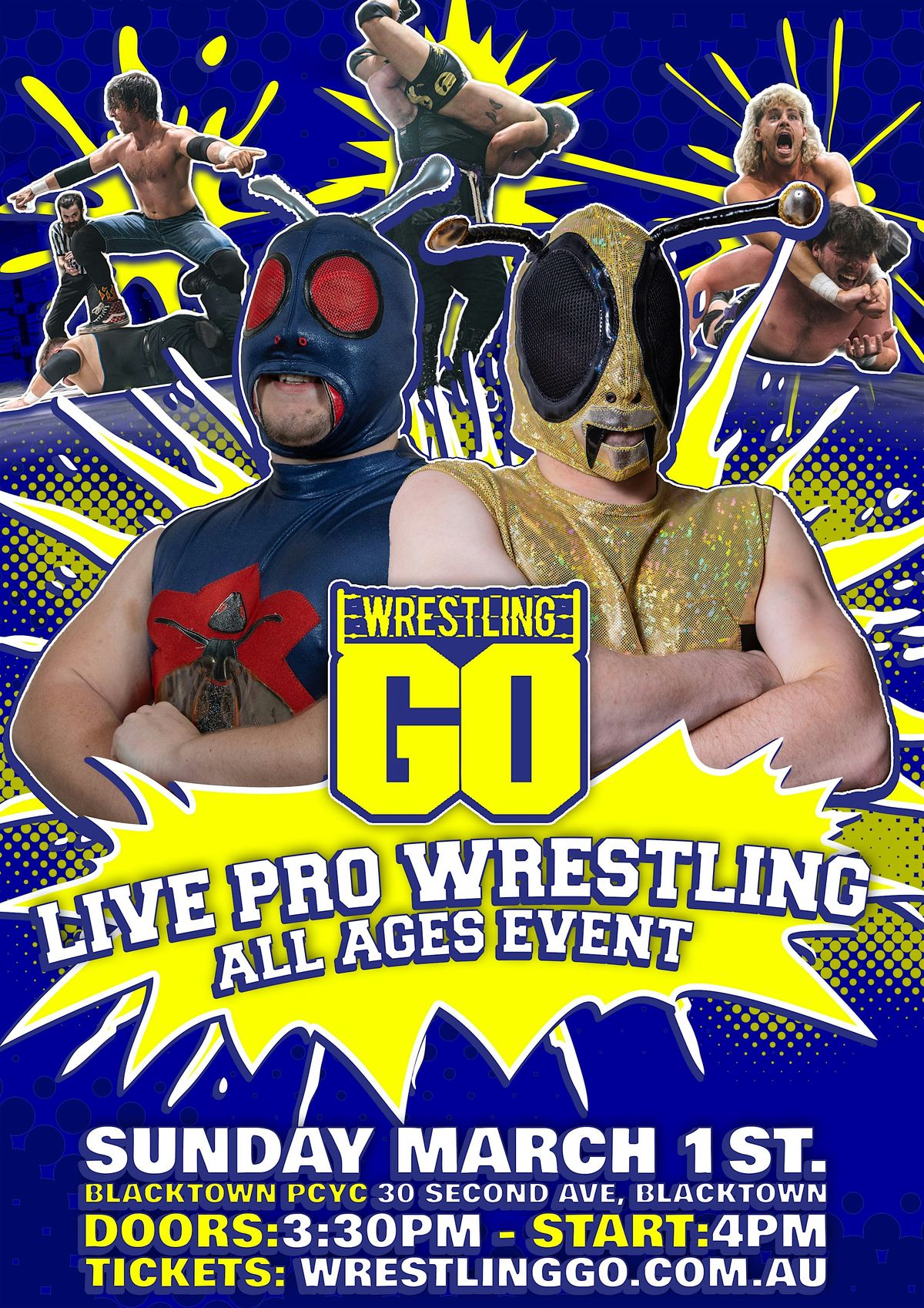 Wrestling GO returns to PCYC Blacktown on Sunday May 31st for family friendly professional wrestling!