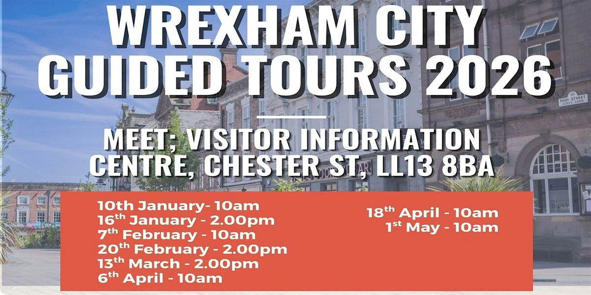 Regular Wrexham City Guided tours take place on Wrexham AFC home game dates and throughout the year. Please enquire with Wrexham Visitor Information Centre or check Eventbrite listings by myself and my colleague, Katie Crowther Tourist Guide