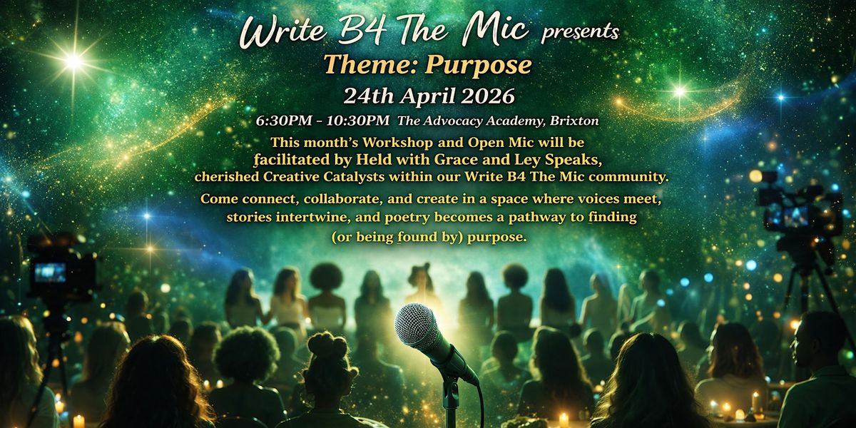 Join us for the April Edition of Write B4 The Mic, where our creative community gathers to explore this month’s theme: Purpose. What does purpose mean for us? For you? Is it something we search for, or something that finds us when we least expect it?