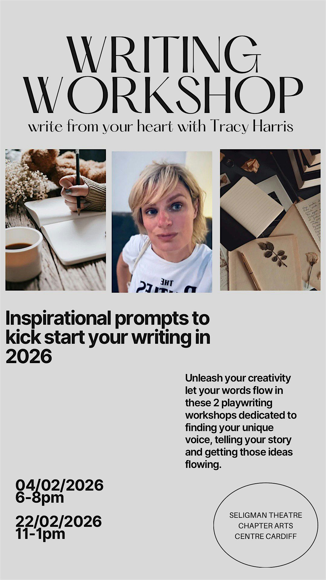 This workshop will be filled with inspirational prompts and tips for you to develop your writing in 2026. This workshops will focus on structure form and storytelling! getting your ideas from page to stage.