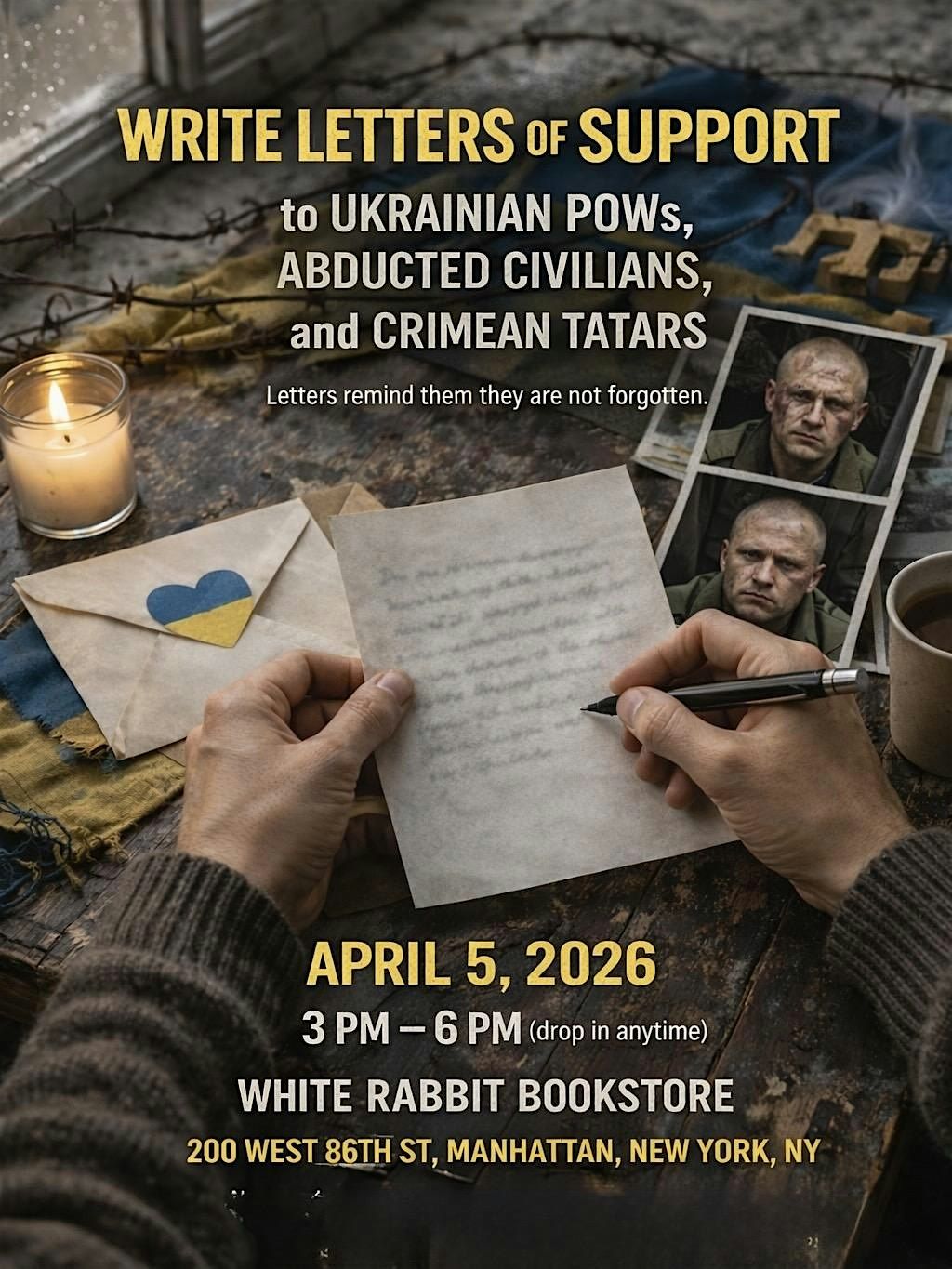 We’re getting together on April 5 to write letters to Ukrainian POWs, abducted civilians, and Crimean Tatars held in Russian prisons.