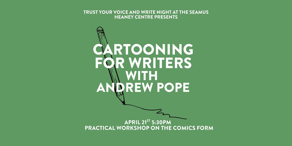 Join cartoonist and editor Andrew Pope (No, Mean City! Low Intensity and Belfast Comics Jam) for a session all about comics, cartoons, and how to write them. We’ll be discussing the basics of the form, the fascinating history of the Belfast cartooning scene, and how to think about cartooning yourself.