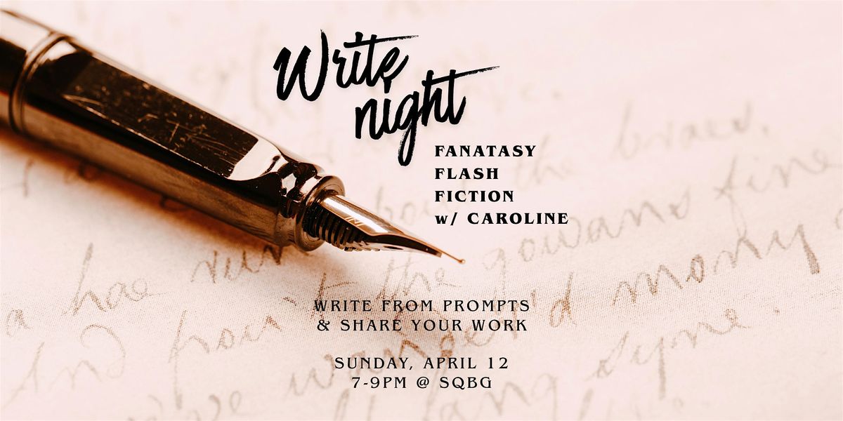 Join Caroline for a small group writing night. We'll get a prompt, write for 20 minutes, then share our work!