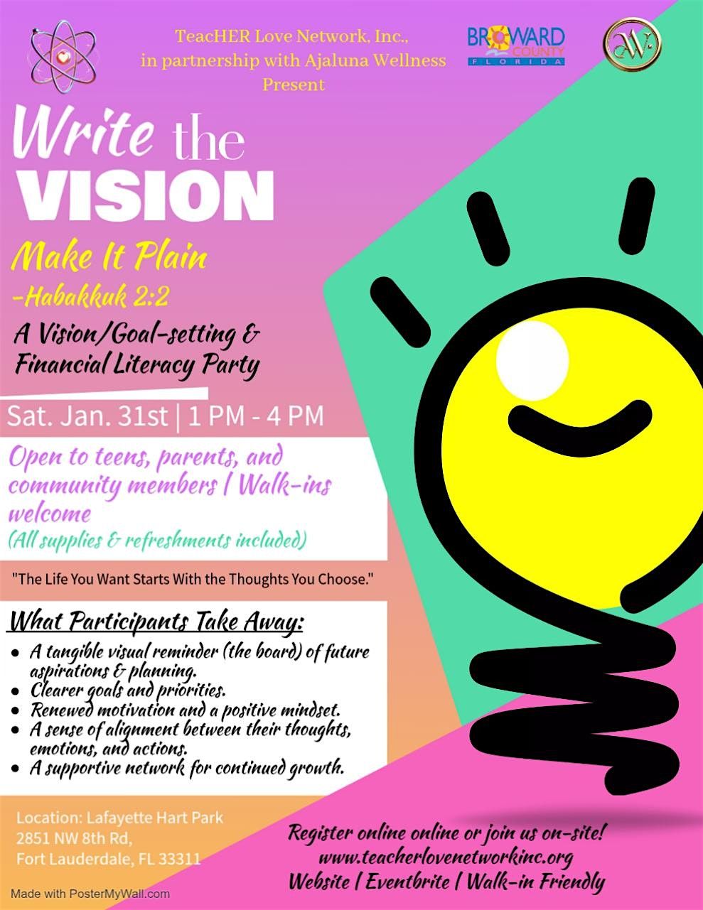 The purpose of Write the Vision and Make It Plain is to equip individuals—particularly young women and emerging leaders—with the mindset, structure, and financial knowledge needed to turn vision into measurable action. Participants leave with a written plan, defined goals, and increased financial awareness that supports long-term stability and success.