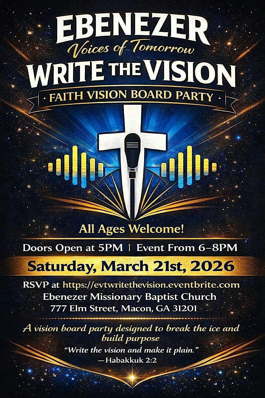 Faith Vision Board Night is a creative, Spirit-led gathering designed to help you pause, reflect, and intentionally align your future with God. Rooted in Habakkuk 2:2, this experience brings together worship, prayer, and guided vision board creation to help bring clarity, encouragement, and direction. Come as you are and leave inspired to write the vision and trust God with what’s next.