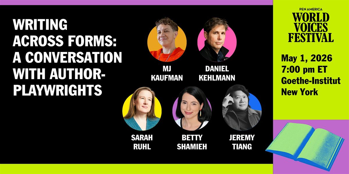 Throughout the twentieth century, it was common for writers to work across forms. Now, however, there is a void between the role of "author" and "playwright" that few dare cross. Daniel Kehlmann (The Director), Sarah Ruhl (Letters from My Teachers), Betty Shamieh (Too Soon), and Jeremy Tiang (State of Emergency) are some of those rare artists. Playwright MJ Kaufman, currently at work on their first novel, will lead them in a conversation examining the reasons behind this curious divide, and what it means to reject it. Join them as they discuss how they choose the form best suited for a particular idea, the differences between writing words to be read and words to be heard, and approachingĀ work presented by a team of other creatives versus imparted directly from them to their audience.