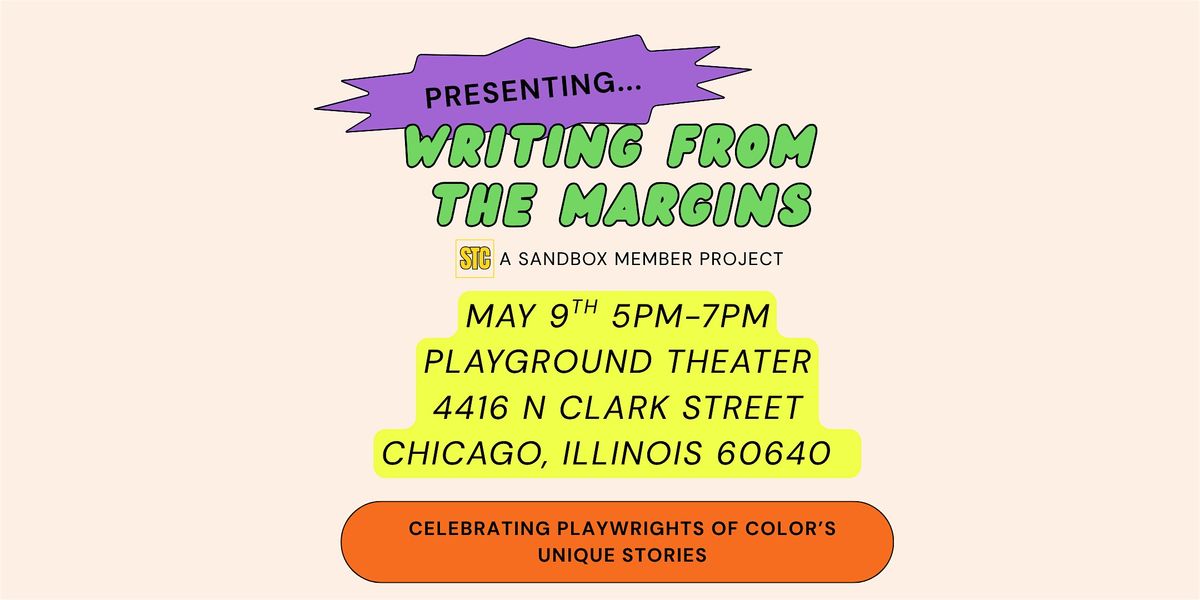 Writing from the Margins is a Sandbox Theater Collective member project, creating space for playwrights of color to tell their unique stories.